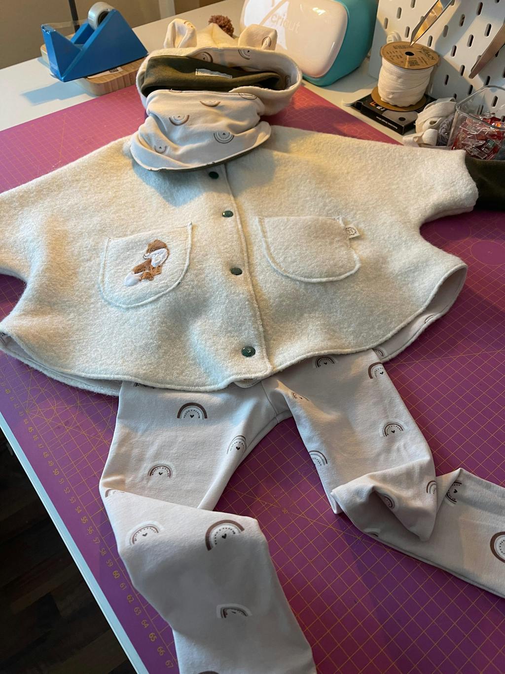 - Außenstoff, z. B.: Wollwalk, Fleece, Sweat, Softshell, Teddy